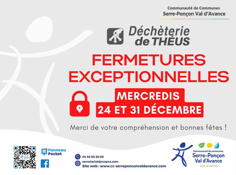 Egalement, en raison des fêtes de fin d'année, les deux sites seront fermés MERCREDI 24 ET 31 DÉCEMBRE 2025, ainsi que les jours fériés du JEUDI 25 DÉCEMBRE et 1er JANVIER.