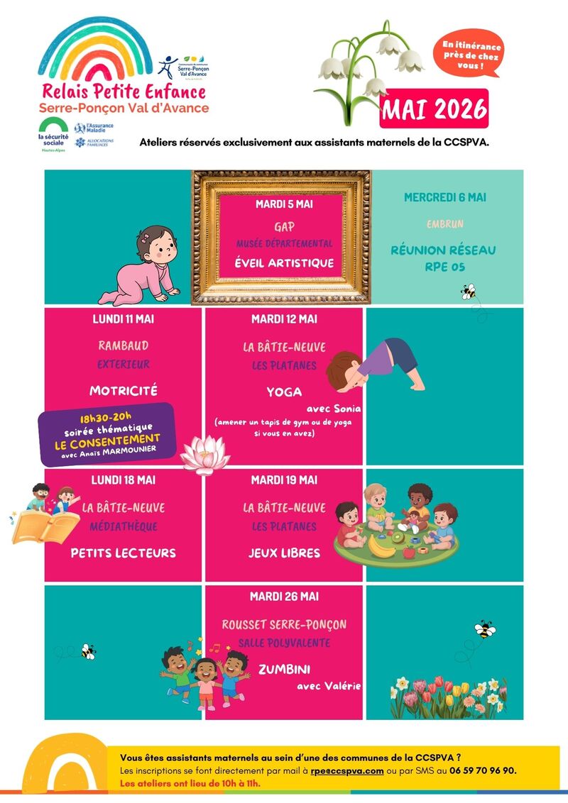 ✨Le Relais Petite Enfance Serre-Ponçon Val d’Avance propose chaque mois un nouveau programme d’ateliers pour les assistantes maternelles du territoire. Des rencontres conviviales en itinérance dans les communes !