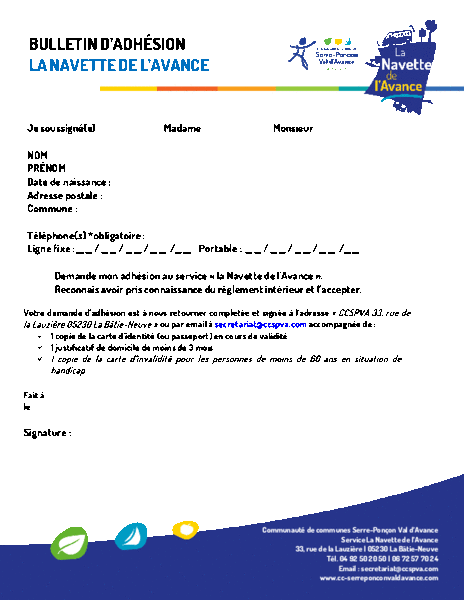 L'inscription se fait auprès du service « La Navette de l’Avance », sur présentation :